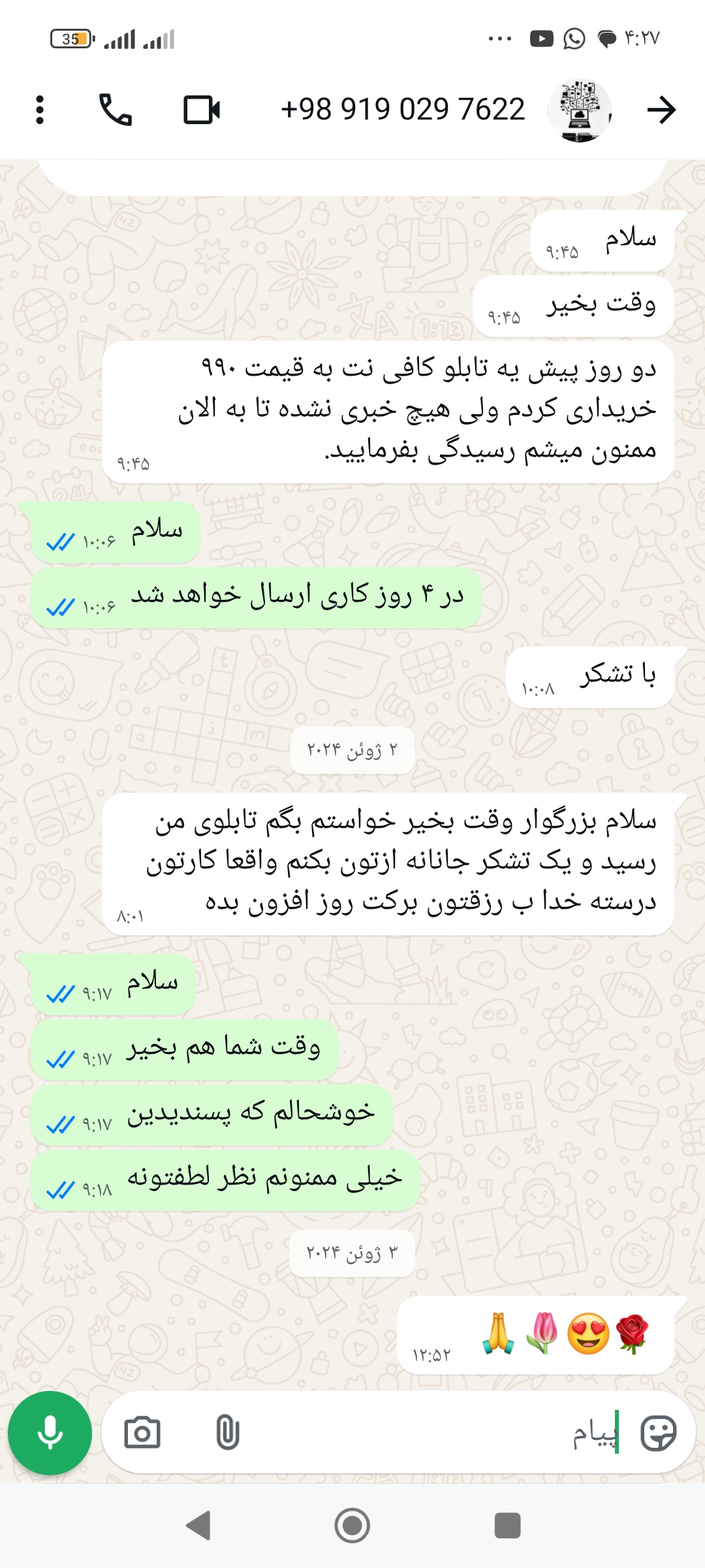 ارسال به سراسر ایران در 6 روز کاری با ضمانت سالم رسیدن
